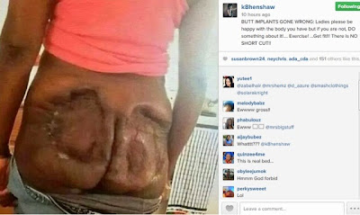 This has been a disturbing issue for most ladies who want to get the asset of big butts! Now tell me, why do ladies do this? Well, let me save myself the stress of a long write up of an epistle of Paul to the Corinthians because a word is enough for the wise. The object of this message is to enocurage so many women who feel uncomfortable with the sizes of their endowments and discourage those intending to go for an implant (breast, buttock, etc.) People even do finger nail implant now. lol. This is not for humour because i bet you will weep when you see the many pictures i brought together of Implants that were unsuccessful!
